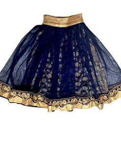 This is a beautiful four piece girls ethnic dress. This Blue Golden girls ethnic dress from UYL is special for its unique colour combination and latest design. Also this dress is made of base material soft net uniquely crafted with silk, Jari, Lace , Gota , Sequins & Stone work. Furthermore it also includes one set three quarter sleeve net top, one set sleeveless tunic embroidered with silk work, one set full length skirt & one set designer bicolor dupatta. The Golden colour tunic features chinese collar with stonework. There is a brooch on bust , fine lace & sequined work around bottom border and a zip on backside . Above all the Jari net skirt is finished with Gota and sequined works taking the design to the next level. You will always be on top of your class with this ethnic wear.